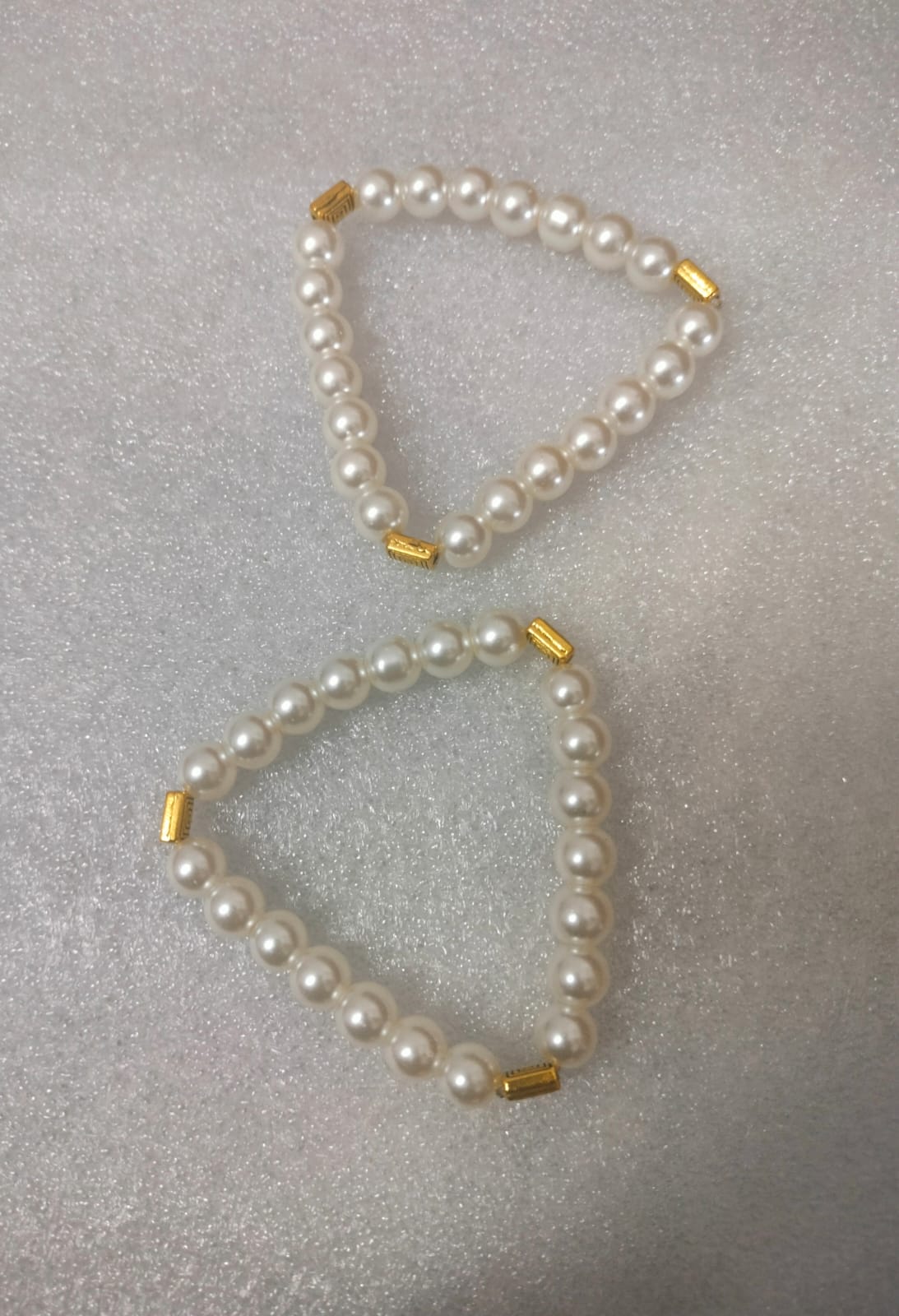 Pearl Bracelet with Gold Tube Beads – Set of 3